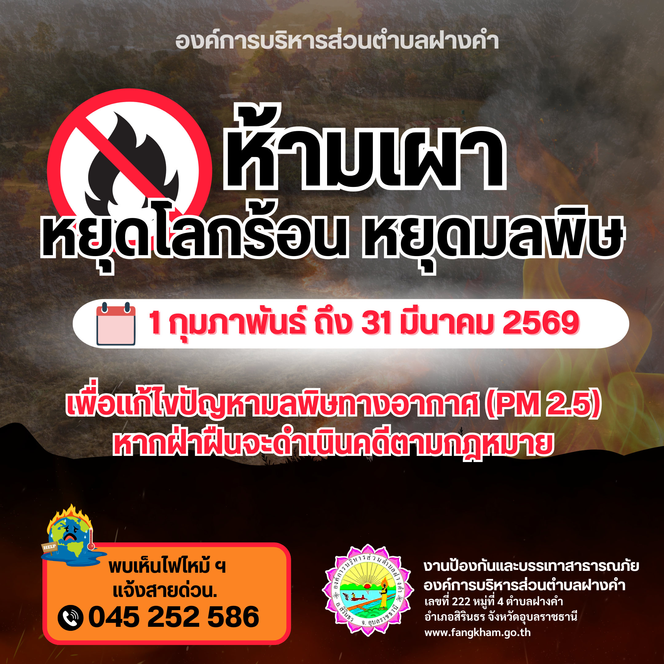 งดการเผาทุกชนิด เพื่อแก้ไขปัญหามลพิษทางอากาศ (PM2.5) [1 กุมภาพันธ์ 2569]
