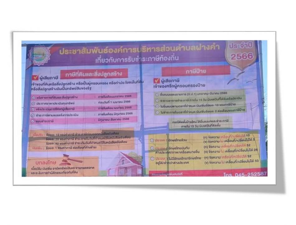ประกาศองค์การบริหารส่วนตำบลฝางคำ เรื่อง ฝ่าฝืนกฎหมายเกี่ยวกับการติดตั้งป้ายโฆษณาหรือสิ่งอื่นใดที่รุกล้ำทางสาธารณะ [13 มิถุนายน 2567]