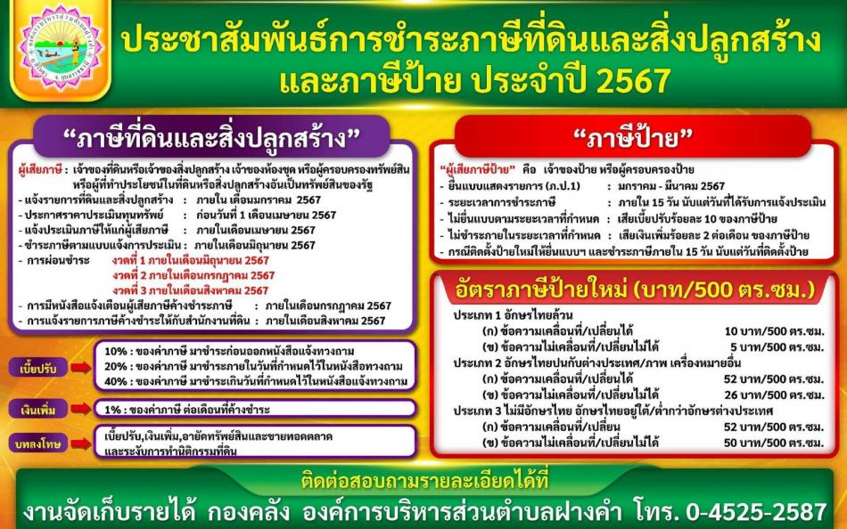 ประชาสัมพันธ์เกี่ยวกับการรับชำระภาษีท้องถิ่น และค่าธรรมเนียมต่างๆ ประจำปี 2568 [4 ธันวาคม 2567]